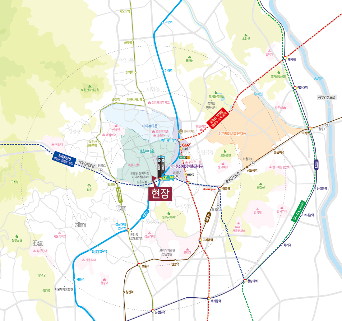 - 내부순환로 길음IC, 우이신설선, 동북선(예정)
