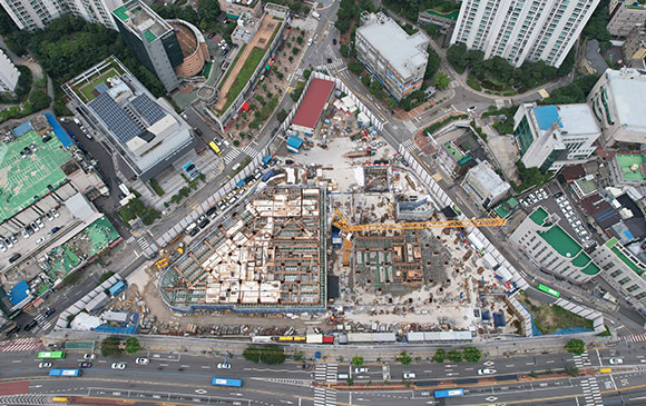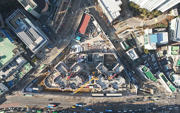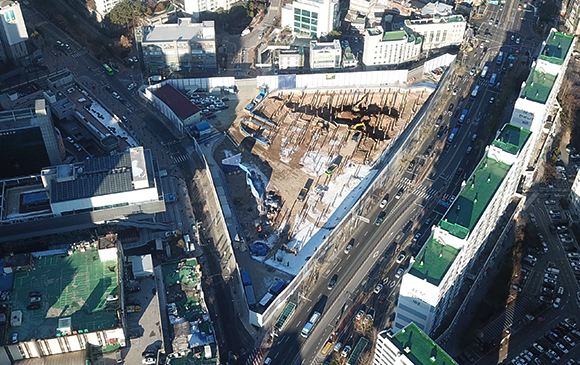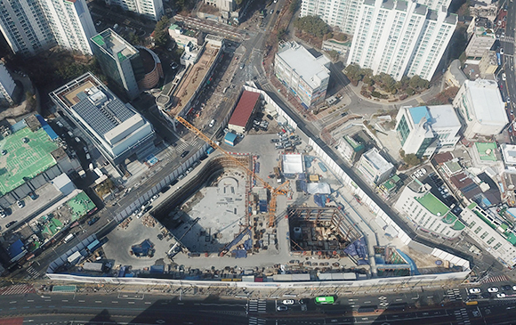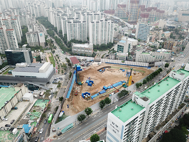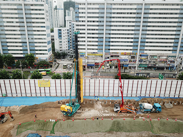 - 센터파일 천공 및 레미콘 타설 작업 진행 中 (42%)