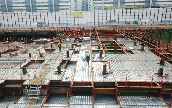 (H-BEAM 및 철근망 설치 28.9% 진행 中)